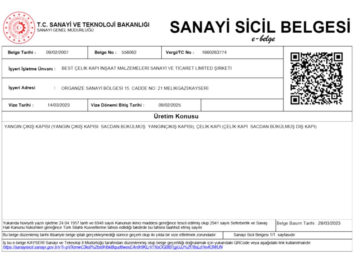 Yangın Çıkış Modeller